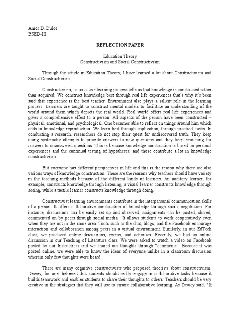 The definition, essay format, and reflective essay examples that will inspire you example of reflection paper. A good reflection paper also shows your understanding of piece of work together with changes in any of your ideas with possible implementation in future